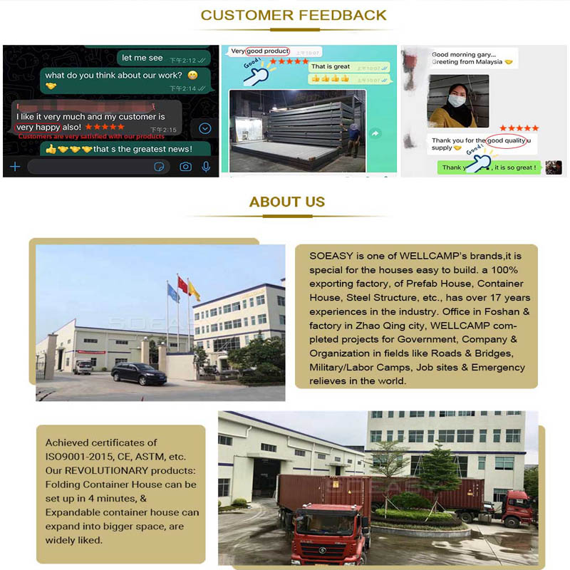 wellcamp offre un campo di lavoro prefabbricato, una casa prefabbricata, una casa container pieghevole, una casa container flat pack, una casa container espandibile, una villa container, una villa in acciaio, un magazzino di strutture in acciaio, un capannone per polli, servizi igienici portatili, una casa di guardia ecc.