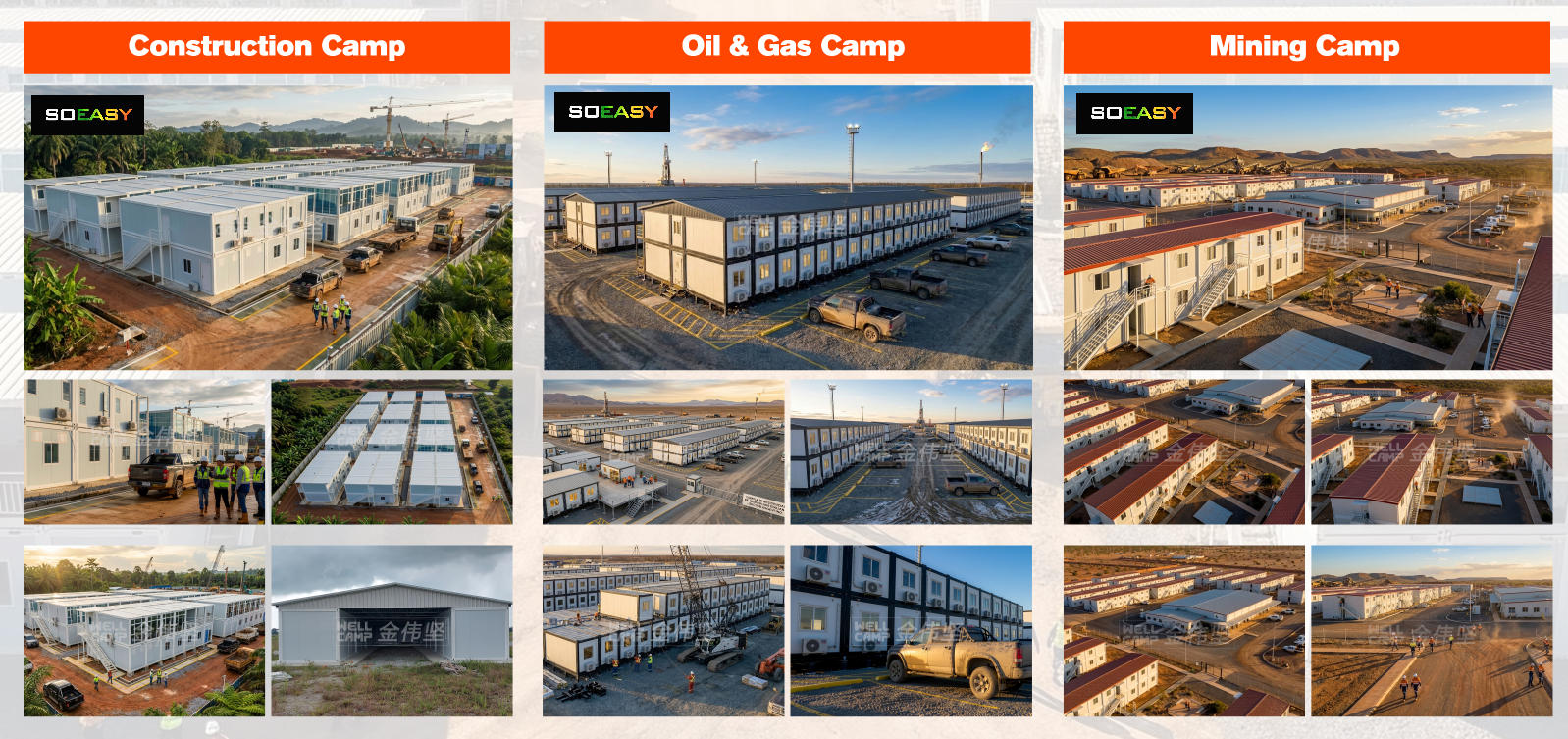 Infrastruttura per carichi pesanti: progettata per sopportare carichi elevati sui pavimenti. È possibile collegarle e impilarle in tutta sicurezza per costruire scuole a più piani, ospedali modulari o enormi campi minerari remoti senza dover realizzare fondamenta imponenti.